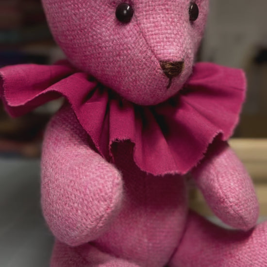 Introducing these darling Teddy bears crafted with love in the picturesque Lake District, England, using the world-famous Harris Tweed and the patchwork pink with some Manx (Laxey Mill in Isle of Man) tweed.
