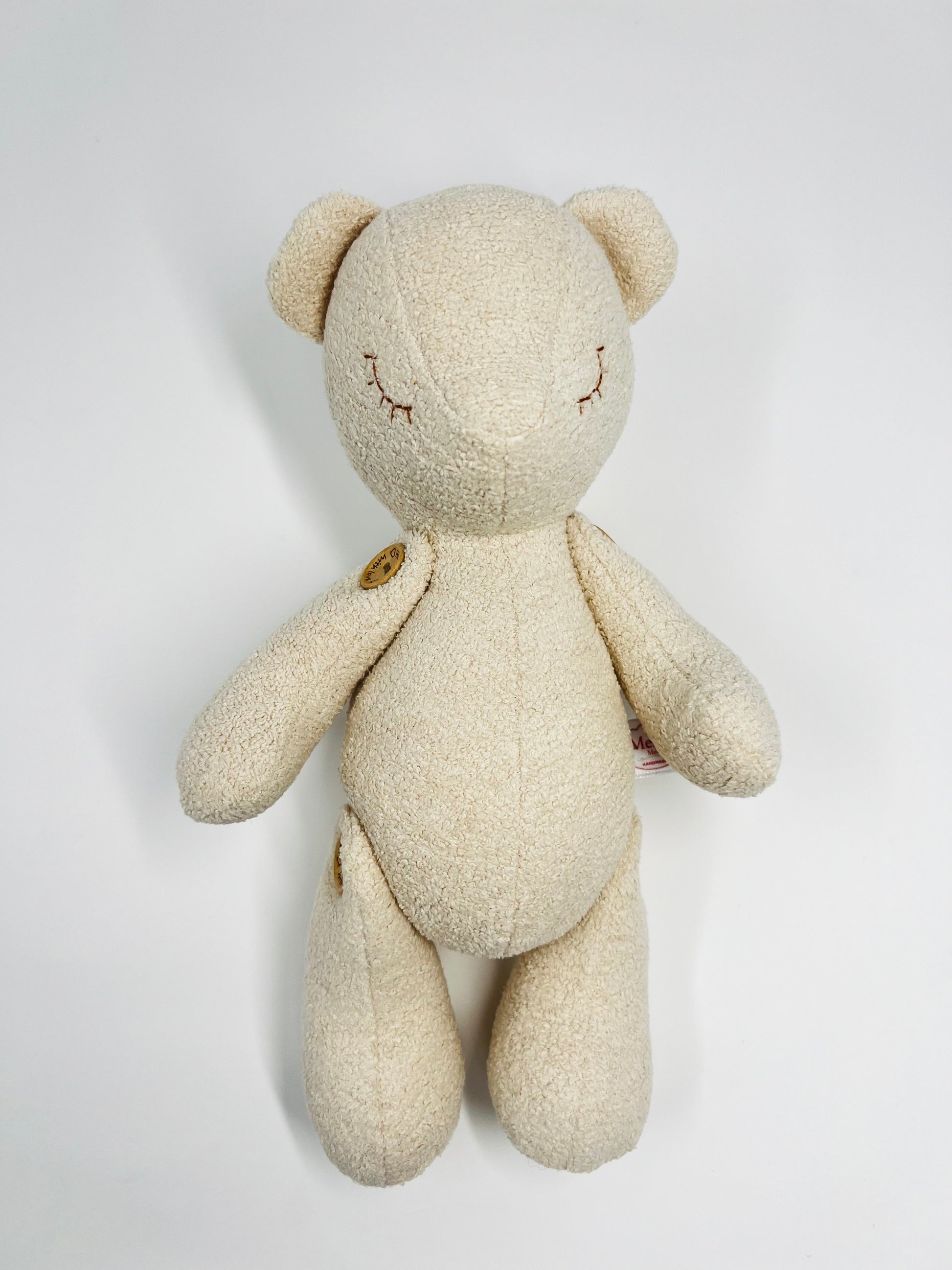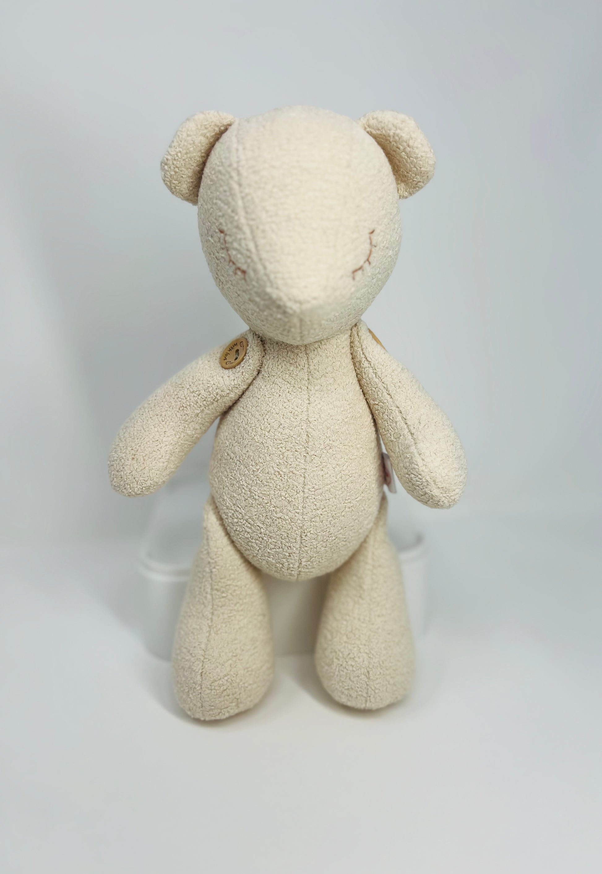 • Features: Ultra-soft boucle velvet, anti-allergenic stuffing, sleepy teddy bear face with embroidered details